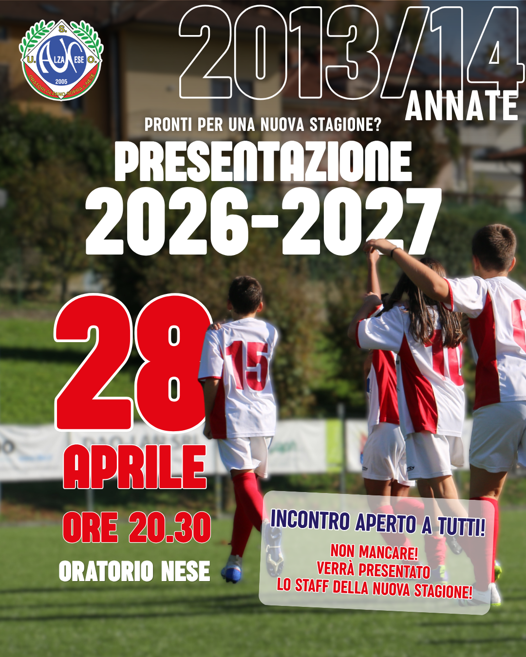 Siamo già al lavoro per costruire il futuro dei nostri ragazzi. Invitiamo tutte le famiglie e chiunque sia interessato al nostro progetto sportivo ed educativo all’incontro per le annate 2013-2014 aperto a tutti dedicato alla presentazione della Stagione Sportiva 2026-2027.